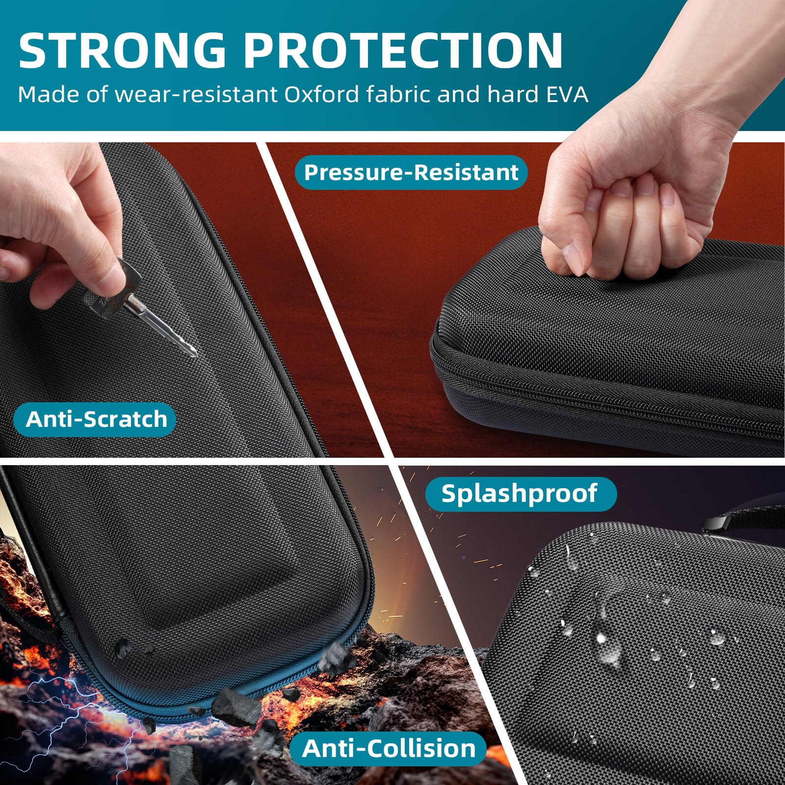 - All-around Protection: The exterior of Switch 2 case is made of Oxford fabric, waterproof and scratch-resistant. The interior is made of EVA material, which protects Switch 2 from drops and bumps and provides good resistance to pressure and deformation. Screen cover protects the screen from scratches, giving it all-around protection.
